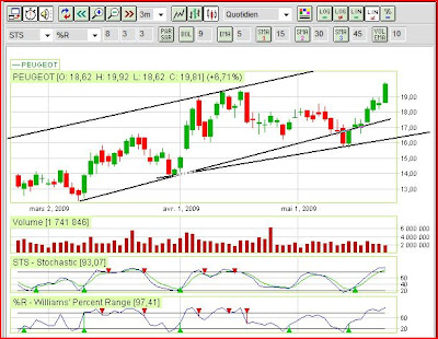 Au point de vue technique, RSI et stochastiques émettent des signaux de vente, depuis que les 23 € ont été atteints. Un gap va se former, les paraboliques seront ainsi croisées. J'envisage un retour à 19 € comme tout à fait réalisable.