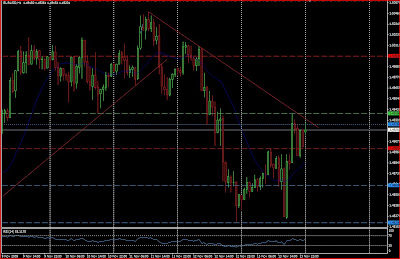 A confirmer, donc, demain matin. En cassure de cette trendline, puis en dépassement du plus haut de vendredi, à 1.4937 $, on pourra privilégier une hausse en direction des 1.50, avec de nombreuses résistances à la clé, premièrement à 1.4965 $. Les chiffres US ont largement de quoi causer des remous demain, on peut donc imaginer une remontée rapide vers la zone des 1.50, très importante pshychologiquement. L'inverse est également vrai, et vous le savez certainement, je suis plus à l'aise avec ce scénario.