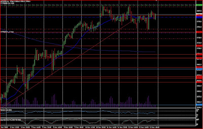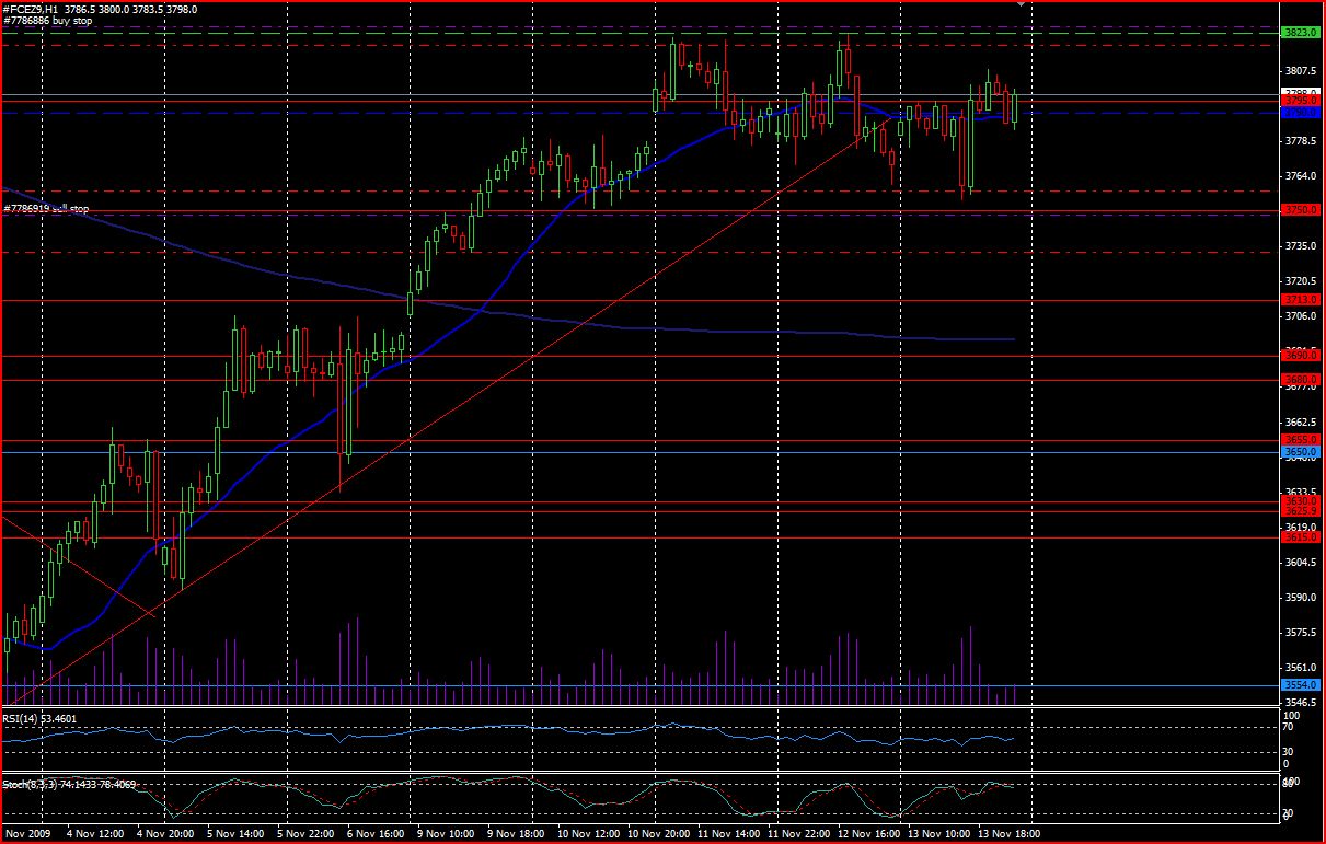 Le chart du contrat FCEZ9 montre un arrêt de la tendance haussière, qui avait tout de même tenu 8 séances de suite sans interruption. La pause était donc logique. Tout porte à croire que les Futures CAC40 vont ouvrir au-delà des 3810 points, pourquoi pas même à proximité de ma première résistance, à savoir celle des 3823 points.