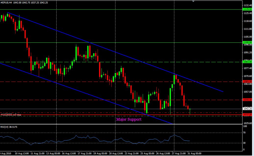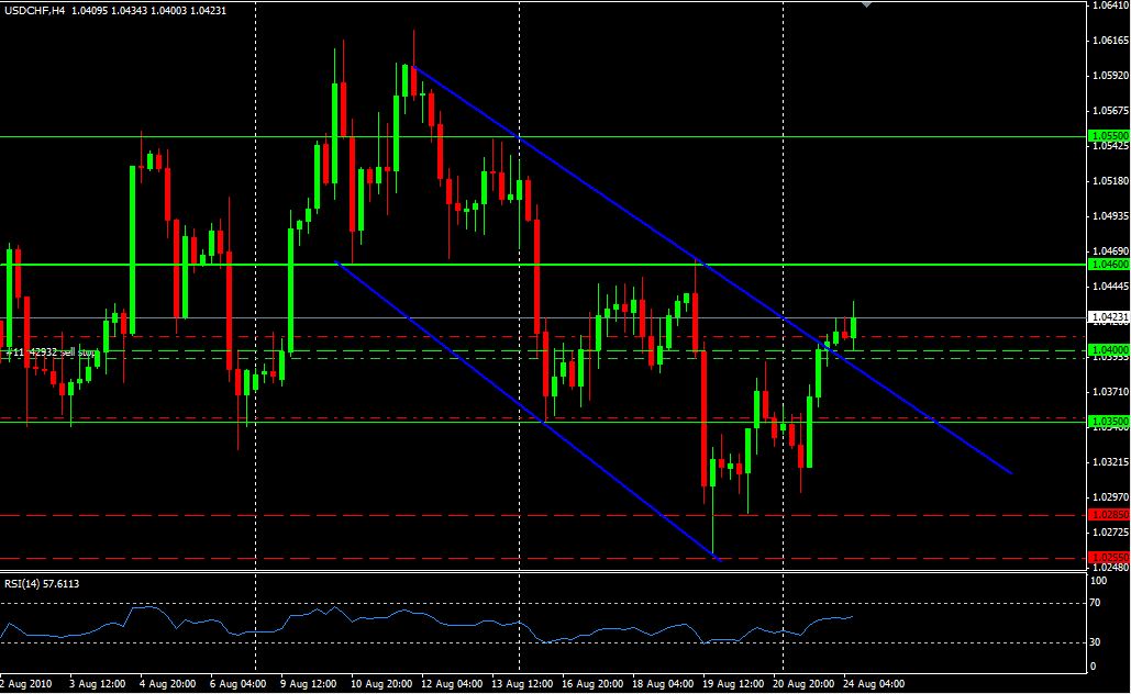 Je suis short en cas de cassure des 1.0400 $ en séance, avec les 1.0350-1.0360 CHF en ligne de mire, sans pour autant écarter une possible continuation baissière, ce qui serait possible avec la publication de mauvais chiffres Américains, ce qui inciterait beaucoup d'investisseurs à se réfugier vers les CHF. Les autres supports peuvent être trouvés sur mon article précédent.