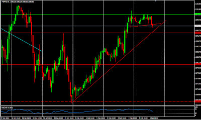 Le rebond a été fort cette semaine, avec 2 séances de rally. Pour l'heure, pas de mouvement important sur les futures, un peu plus sur le Forex... Je vais commencer par le S&P500.Pour moi le potentiel haussier est clairement limité par la résistance située à 1100 points. Seul un franchissement rapide me ferait changer d'avis. Sous 1100 points, j'ai donc une préférence baissière, mais difficile de prévoir ce que va donner le rapport ADP et encore plus compliqué de prévoir l'interprétation qu'en donneront les opérateurs.