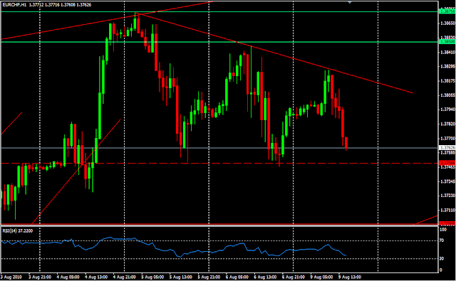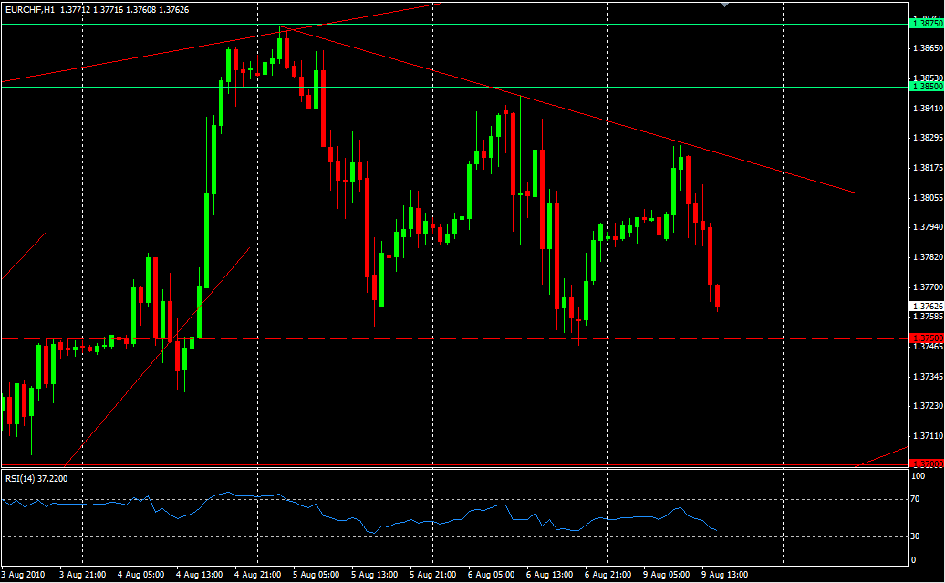 Malgré ces remarques, j'aurai plutôt tendance à favoriser les ordres shorts, sauf donc, si les cours se retournent à la hausse après un test de mes supports clé des 1.3750 CHF et/ou des 1.3700 CHF.